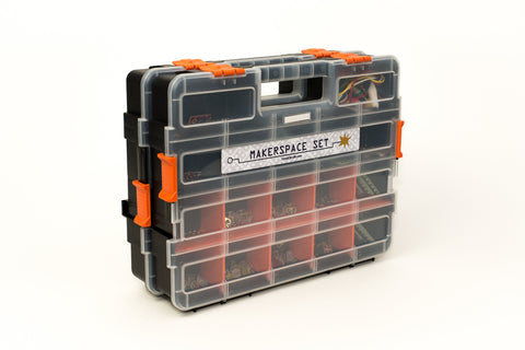 The Makerspace Set has everything you need to get an entire classroom making with Crazy Circuits. Create projects both big and small with over 160 included parts. Use the Touch and Robotics boards to follow one of our programing guides, or create your own code from scratch. Have your students create wearable technology using conductive thread. Crazy Circuits parts are compatible with LEGO䋢 and similar brick building systems. Crazy Circuits parts come 100% ready to go out of the box, which means no soldering or preparation required.