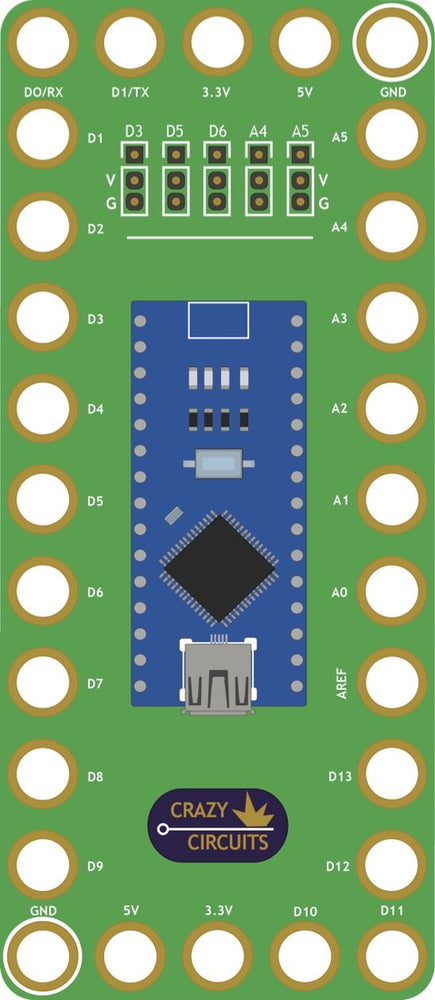 The Crazy Circuits RoboticsåÊBoard allows your to create programmable projects with conductive tape on a brick building system or as a wearable with conductive thread. Use it as a standard programmable Arduino or use our extensive project guides to turn it into something epic. åÊThe five built in output pins allow for instantåÊconnections with sensors and servos. Play a classic video using conductive dough or even buckets of water. Crazy Circuits parts are compatible with LEGO‰ã¢ and similar brick building systems. Crazy Circuits parts come 100% ready to go out of the box, which means no soldering or preparation required.
